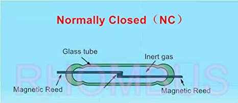 2. The reed switch is normally closed(NC). Two small pieces of magnetic reed are connected when there is no magnet approaching.