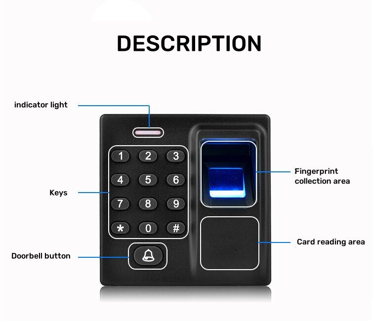 - Support to open door by fingerprint/card/fingerprint+card