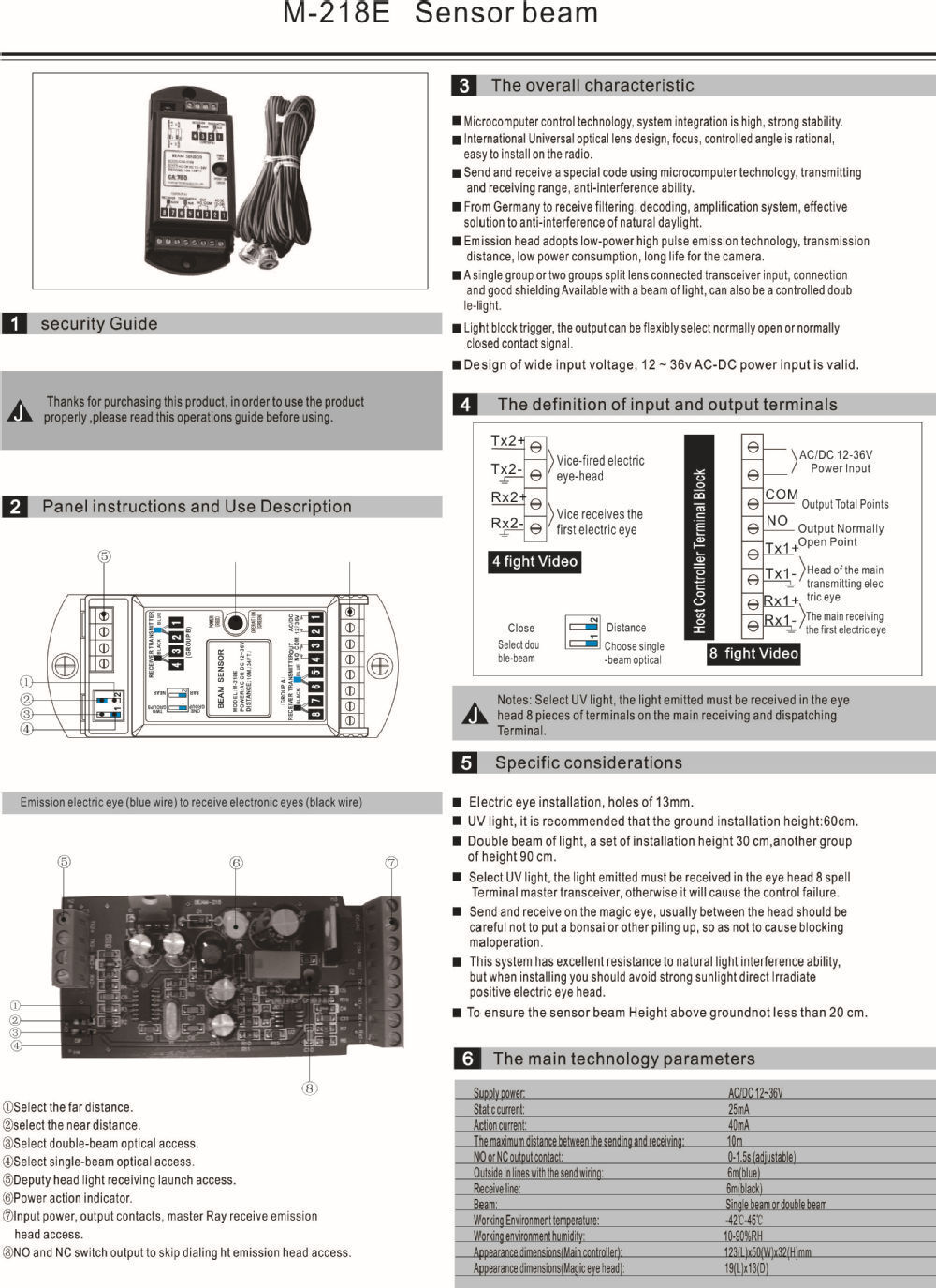 M-218E 10M range secure Beam relay output sensor for automatic doors