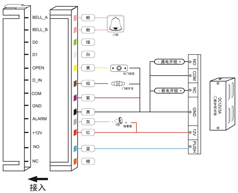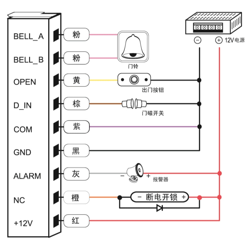 Please note that "exit button", "electric lock" and "DC 12V power supply" are not included in this package, please kindly refer to our store for all available accessories for Access Control.